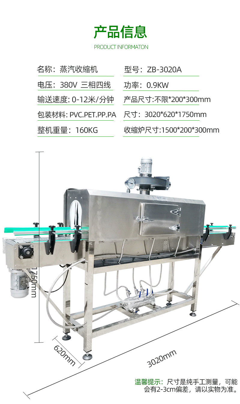 • 外觀檢查:在開機前和關機后,都應該對蒸汽收縮機進行簡單的外觀檢查。查看機器的外殼是否有損壞、變形或松動的部件,特別是連接部位的螺絲和螺母是否緊固。如果發現外殼有裂縫,可能會影響機器的安全性,需要及時修復或更換。