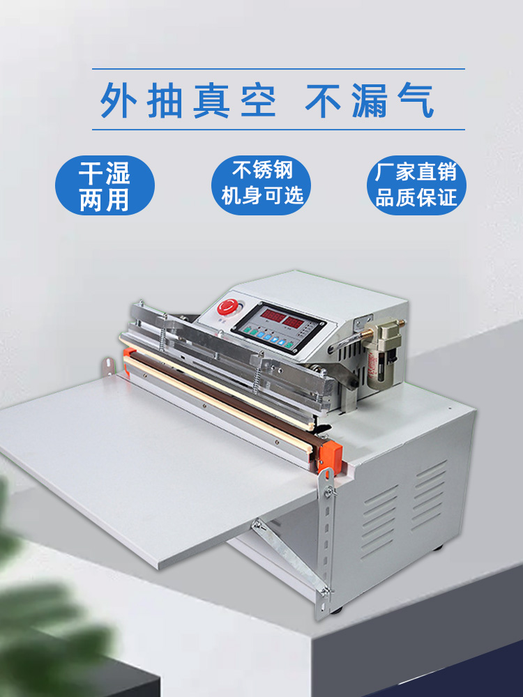 • 密封性能:外抽真空包裝機的整體密封性能對真空度至關重要。如果機器的抽氣室、包裝袋封口處等部位存在密封不嚴的情況,外界空氣會不斷進入,導致抽氣速度變慢,難以達到設定的真空度。