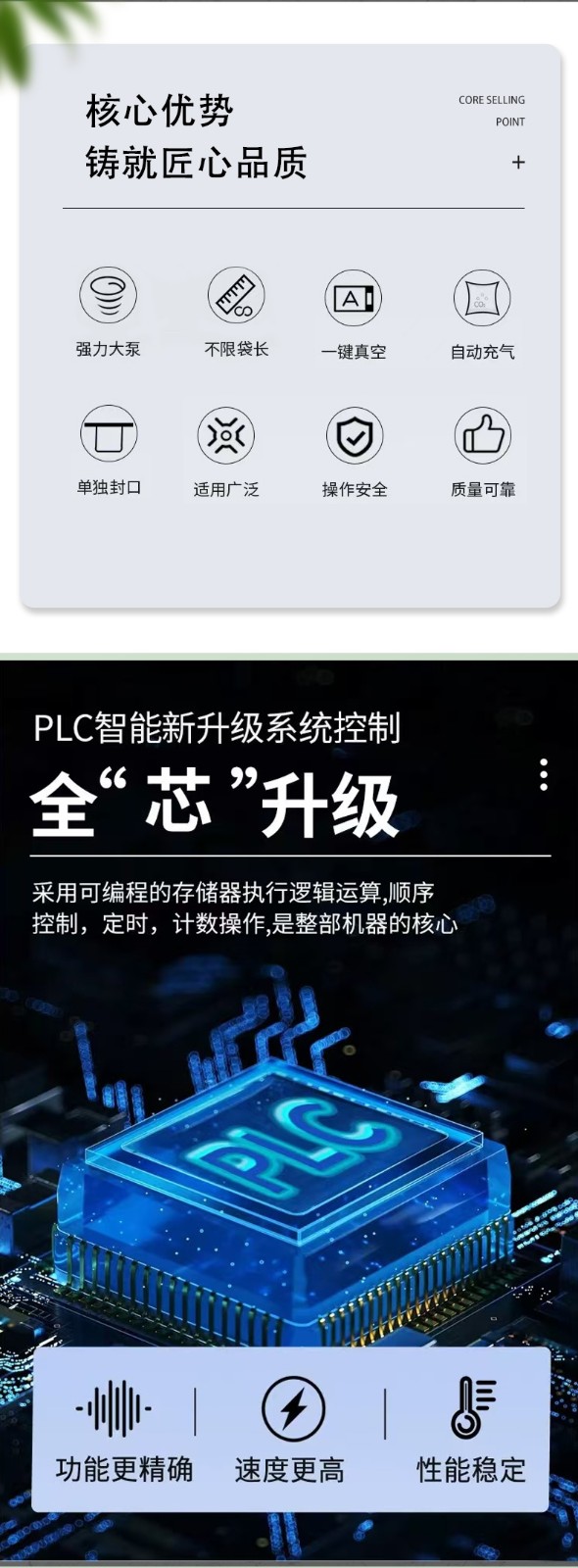 在立式外抽真空包裝機中,真空過濾裝置是保障設備穩(wěn)定運行、延長核心部件壽命、適配多品類包裝需求的 “防護關(guān)鍵”,其作用圍繞 “過濾雜質(zhì)、保護系統(tǒng)、優(yōu)化包裝效果” 三大核心展開,具體可拆解為以下 4 個維度: