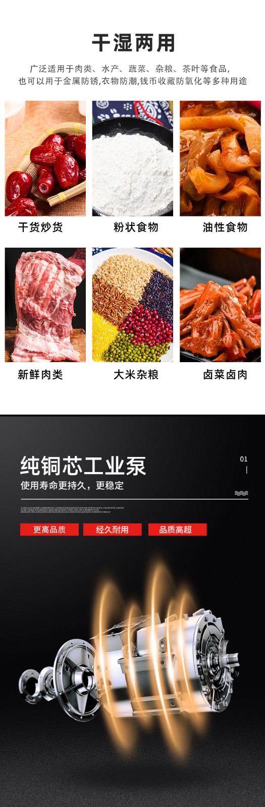 - 真空泵規(guī)格:這是決定效率的基礎(chǔ)。真空泵的抽氣速率(單位 m3/h)越快,達(dá)到目標(biāo)真空度的時(shí)間就越短,單次包裝周期隨之縮短。