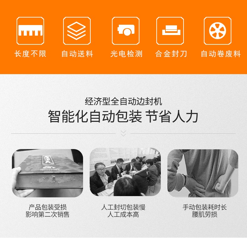 - 定制機(jī)型:針對(duì)長(zhǎng)條或大尺寸產(chǎn)品(如鋁型材、相框),雖速度相對(duì)較低(每分鐘 10-30 件),但仍遠(yuǎn)高于人工包裝效率。