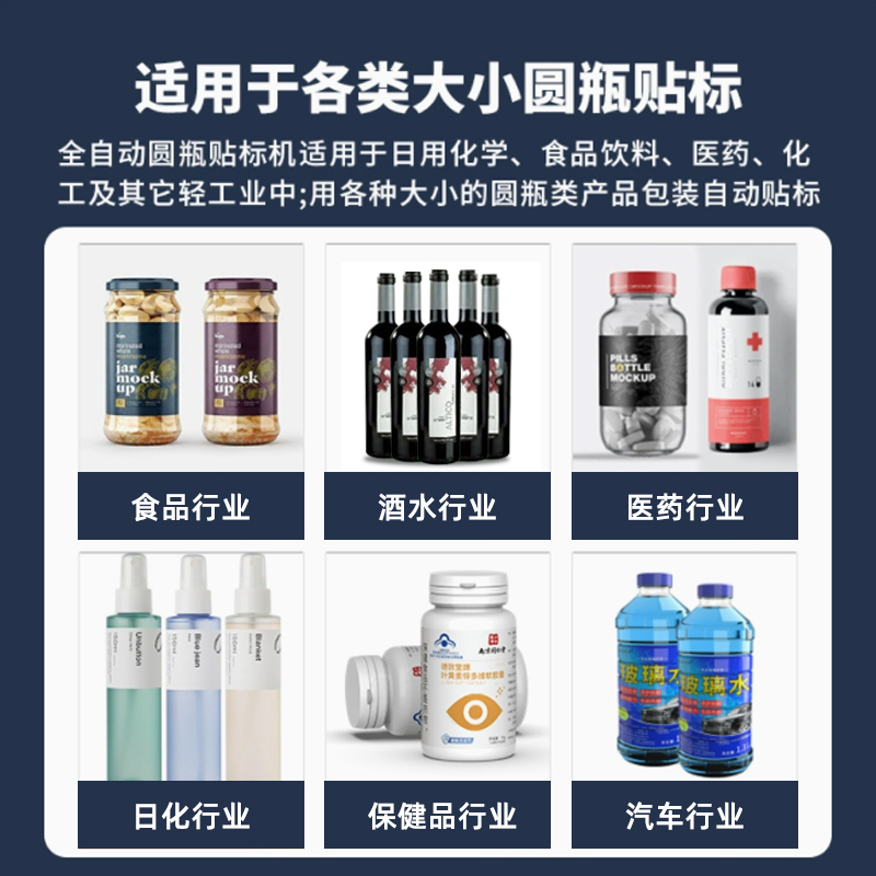 無需大量更換機械部件,即可兼容直徑 30-100mm(部分可定制)的圓瓶,支持玻璃、塑料、金屬等不同材質瓶身;同時能處理不干膠、監管碼、防偽標等多種標簽,換產時僅需在觸摸屏調整參數,10 分鐘內即可完成切換。