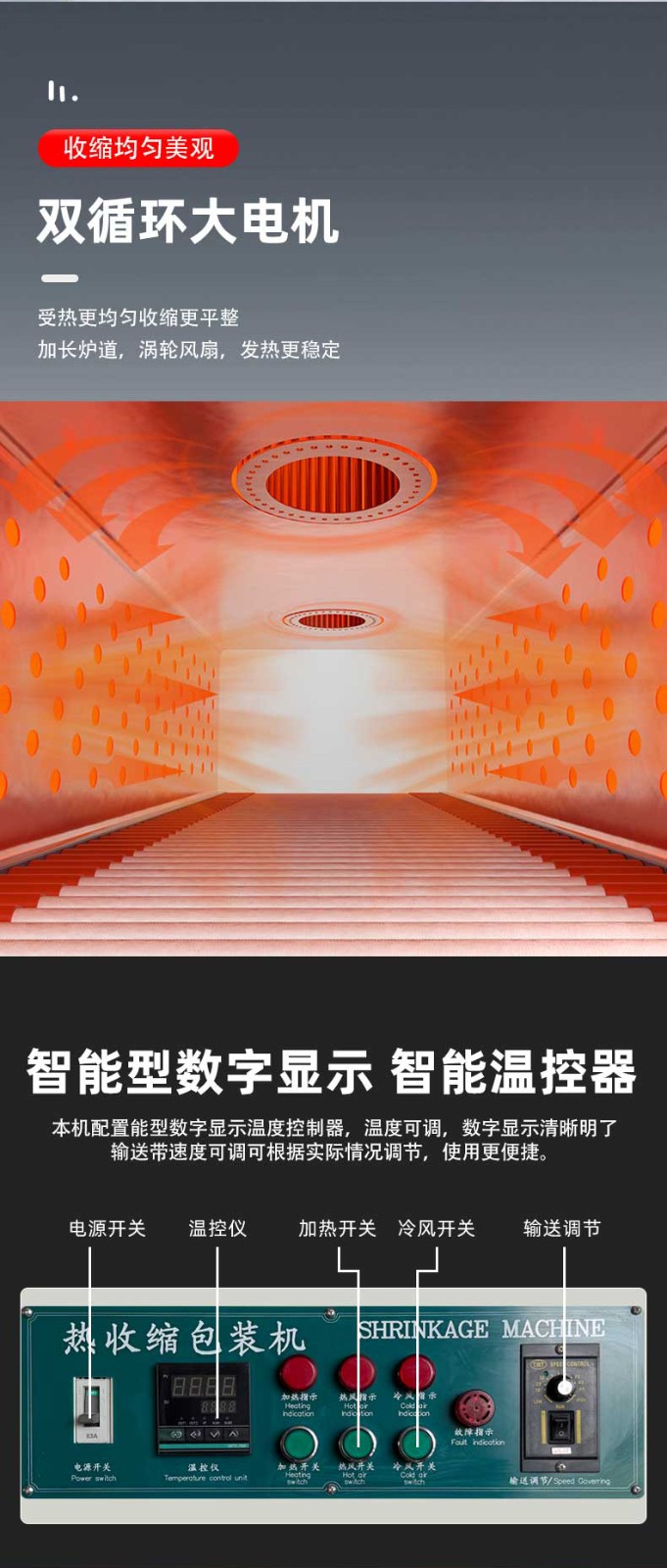 袖口式封切熱收縮包裝機(jī)憑借 高效密封、防塵防潮、貼合定型、便于堆疊運(yùn)輸 的核心優(yōu)勢,廣泛應(yīng)用于多行業(yè)的標(biāo)準(zhǔn)化包裝需求,尤其適配批量生產(chǎn)的規(guī)則 / 異形產(chǎn)品組合包裝。 一、食品飲料行業(yè)(最核心應(yīng)用領(lǐng)域) 瓶裝 / 罐裝產(chǎn)品組合包裝 礦泉水、啤酒、飲料、涼茶等 多瓶捆綁包裝(如 6 瓶 / 12 瓶 / 24 瓶組),無底托收縮膜直接包裹,替代傳統(tǒng)紙箱 / 膠帶,降低包裝成本 30%+,且透明膜可展示產(chǎn)品品牌; 罐頭、醬料瓶、食用油桶等 單瓶 / 多瓶密封包裝,防止運(yùn)輸過程中泄漏、氧化,延長保質(zhì)期(尤其適用于含油脂、易受潮食品)。 零食與烘焙產(chǎn)品包裝 餅干盒、薯片罐、面包禮盒等 多盒組合包裝(如 3 盒 / 6 盒套裝),收縮膜緊密貼合,避免禮盒散開,同時防塵防潮,提升禮盒檔次; 冷凍食品(如速凍水餃、湯圓)的 外箱收縮包裝,強(qiáng)化箱體密封性,防止冷鏈運(yùn)輸中受潮解凍。 符合食品級包裝標(biāo)準(zhǔn)(適配 PE/POF 無毒膜),包裝速度快(8-15 包 / 分),適配生產(chǎn)線連續(xù)作業(yè),同時透明包裝便于終端貨架展示。 高效量產(chǎn),適配規(guī)模化生產(chǎn) 全自動機(jī)型包裝速度達(dá) 8-25 包 / 分鐘(單排)、15-40 包 / 分鐘(多排),支持 24 小時連續(xù)作業(yè),匹配食品飲料、日化等行業(yè)生產(chǎn)線節(jié)拍; 換產(chǎn)靈活,參數(shù)化存儲 100 + 組產(chǎn)品規(guī)格,切換僅需 2-5 分鐘,無需拆卸機(jī)械部件。 包裝效果優(yōu)質(zhì),防護(hù)與展示兼具 熱收縮膜緊密貼合產(chǎn)品輪廓,形成密封、防潮、防塵、防刮的立體包裝,降低運(yùn)輸損耗率至 0.5% 以下; 支持透明膜 / 彩印膜包裝,透明膜可展示產(chǎn)品細(xì)節(jié),彩印膜可印刷品牌 LOGO 與促銷信息,兼顧防護(hù)與品牌營銷。 成本可控,降本增效顯著 無底托包裝設(shè)計(jì)替代傳統(tǒng)紙箱、膠帶,包裝材料成本降低 30%-50%,同時節(jié)省倉儲與運(yùn)輸空間 40%; 采用紅外加熱或石英管加熱技術(shù),比傳統(tǒng)電熱絲節(jié)能 30%-50%,待機(jī)自動降功率,長期運(yùn)行成本更低; 全自動機(jī)型僅需 1 人巡檢,降低人工成本 80%,避免人工操作誤差。 兼容性強(qiáng),適配多場景需求 可包裝方形、圓形、異形等多種形態(tài)產(chǎn)品,支持單件 / 多件組合包裝,產(chǎn)品尺寸覆蓋 50mm×30mm×20mm 至 800mm×600mm×500mm(可定制更大規(guī)格); 適配 PE、POF、PVC 等多種熱收縮膜,滿足食品級(FDA/ROHS)、醫(yī)藥級(GMP)、工業(yè)防靜電等不同行業(yè)標(biāo)準(zhǔn)。 智能化操作,易上手易維護(hù) PLC 觸控屏可視化操作,參數(shù)設(shè)置直觀,普通工人 1-2 小時即可獨(dú)立操作,支持故障自動報(bào)警與修復(fù)提示; 模塊化結(jié)構(gòu)設(shè)計(jì),封刀、加熱管等易損件更換便捷,日常維護(hù)僅需清潔、緊固,維護(hù)成本降低 40%。 環(huán)保合規(guī),符合綠色生產(chǎn)趨勢 采用可回收、無毒環(huán)保膜材,無粉塵、無異味排放,符合全球綠色包裝政策; 減少紙箱、膠帶等不可降解材料使用,降低快遞垃圾與資源浪費(fèi),適配電商、物流行業(yè)環(huán)保要求。