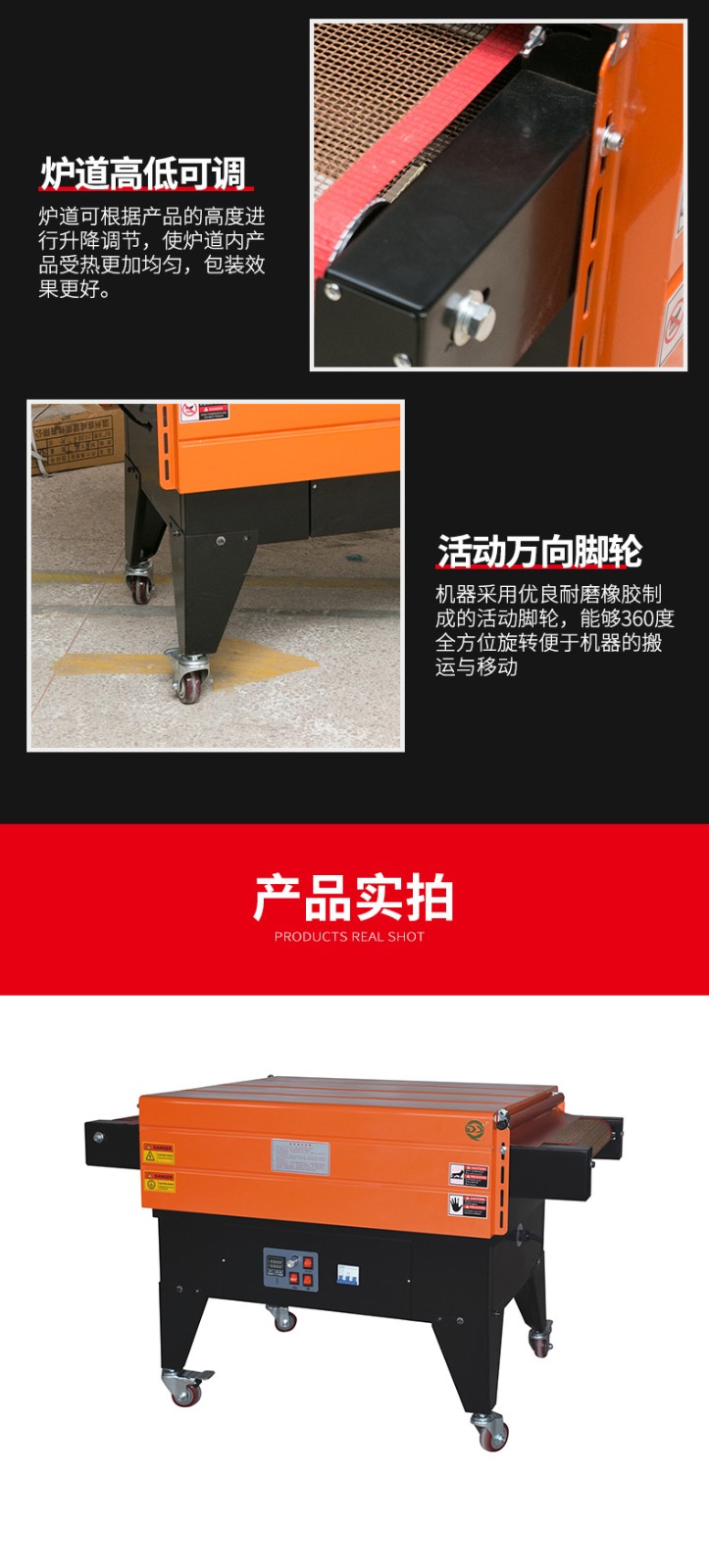 - 包括輸送帶和驅(qū)動電機(jī)等部分。輸送帶用于將產(chǎn)品平穩(wěn)地輸送通過熱空氣噴射區(qū)域,其速度可以調(diào)節(jié)。這樣可以根據(jù)不同的包裝速度要求和產(chǎn)品尺寸來控制產(chǎn)品在機(jī)器中的停留時間。例如,對于較小的產(chǎn)品,如糖果,可以加快輸送帶速度,提高包裝效率;而對于較大的產(chǎn)品,如家電產(chǎn)品的配件,輸送帶速度可以適當(dāng)減慢,以保證薄膜有足夠的時間進(jìn)行收縮。