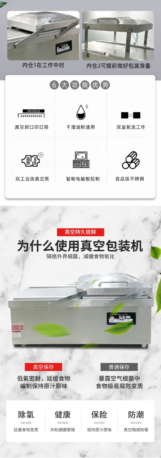 平板雙室真空機(jī)是一種常見的真空包裝設(shè)備,以下是其相關(guān)介紹: