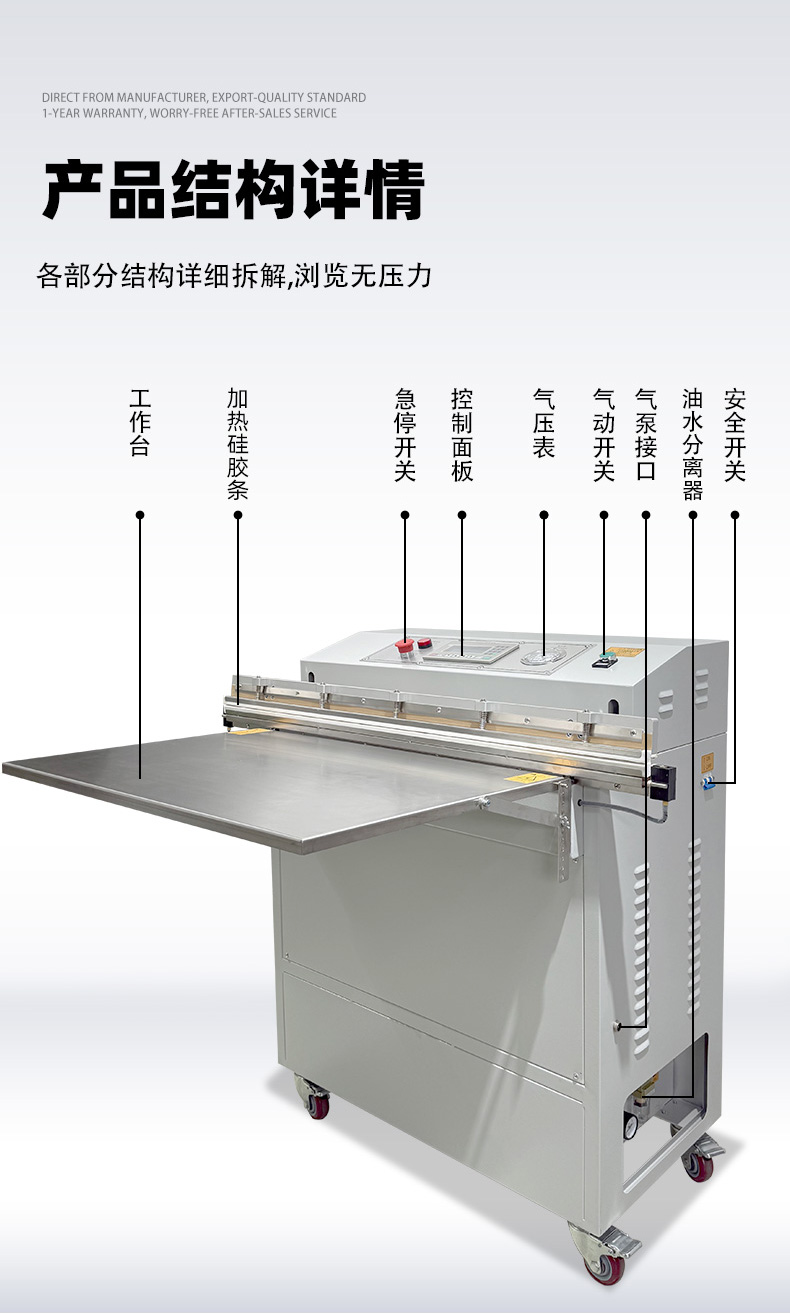 • 操作門檻低:無需頻繁調整腔體大小,只需定位袋口即可啟動,部分機型配備腳踏開關,單人即可高效操作。