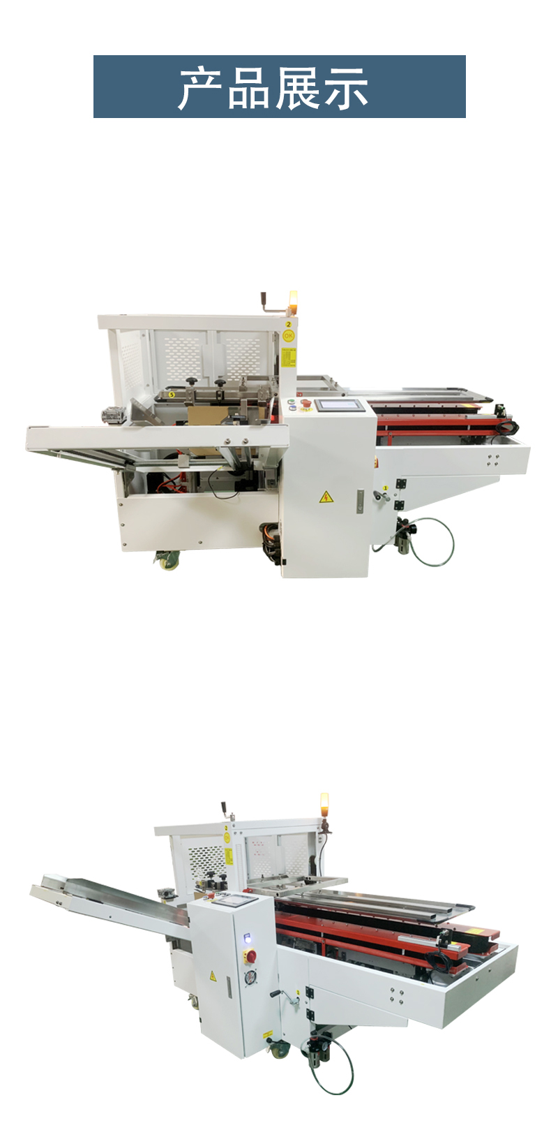 - 輔助折疊裝置(如果有):這些裝置可以是一些帶有滾輪的導軌或可旋轉的折頁板。當紙箱經過這些裝置時,滾輪或折頁板會與紙箱的折痕接觸,通過滾動或旋轉的動作幫助折痕更好地折疊,提高開箱的效率和質量。